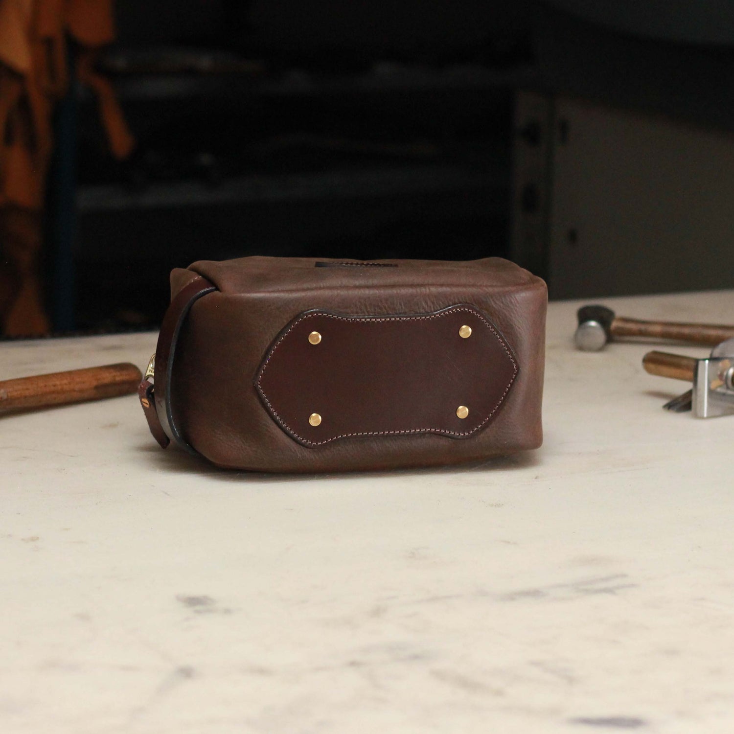 I select sturdy leathers that hold their own and favour hides that take on more character in time. The leather I handpicked for this wash bag strikes that ideal balance.