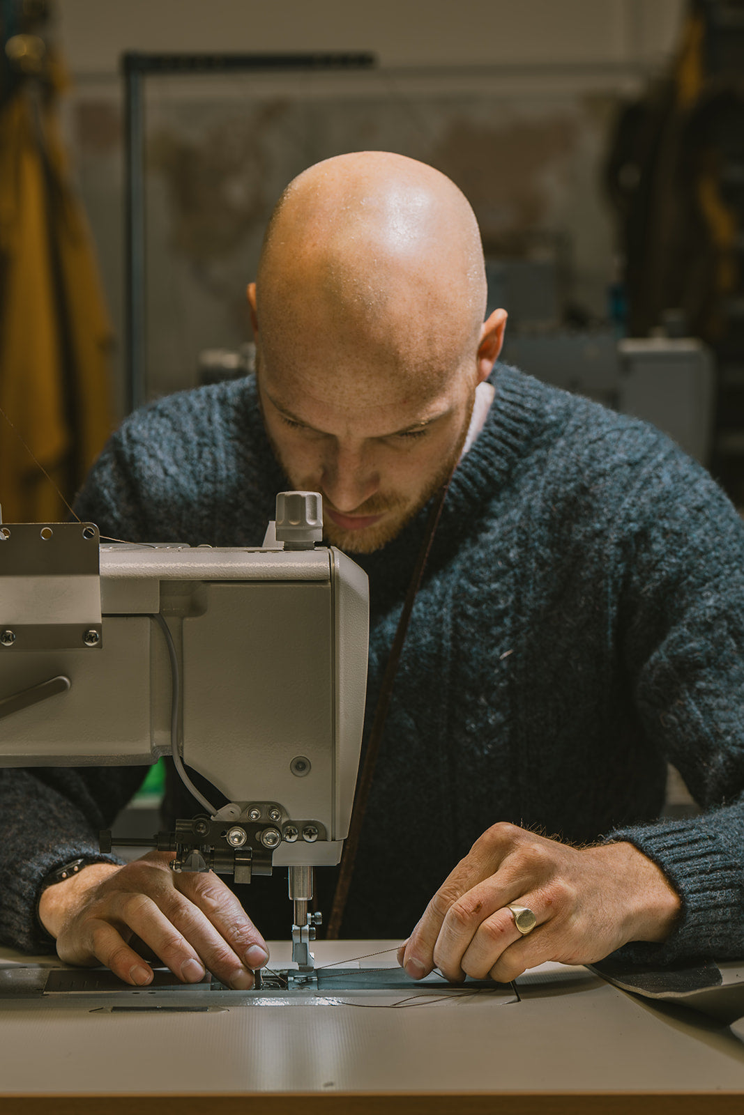 I design my patterns using an age-old method, drawn by hand with pencil and pattern card, and cut with a scalpel—there’s no use of CAD here, everything is done by hand. I physically mock up each new design in leather, ensuring everything fits correctly and works as intended.