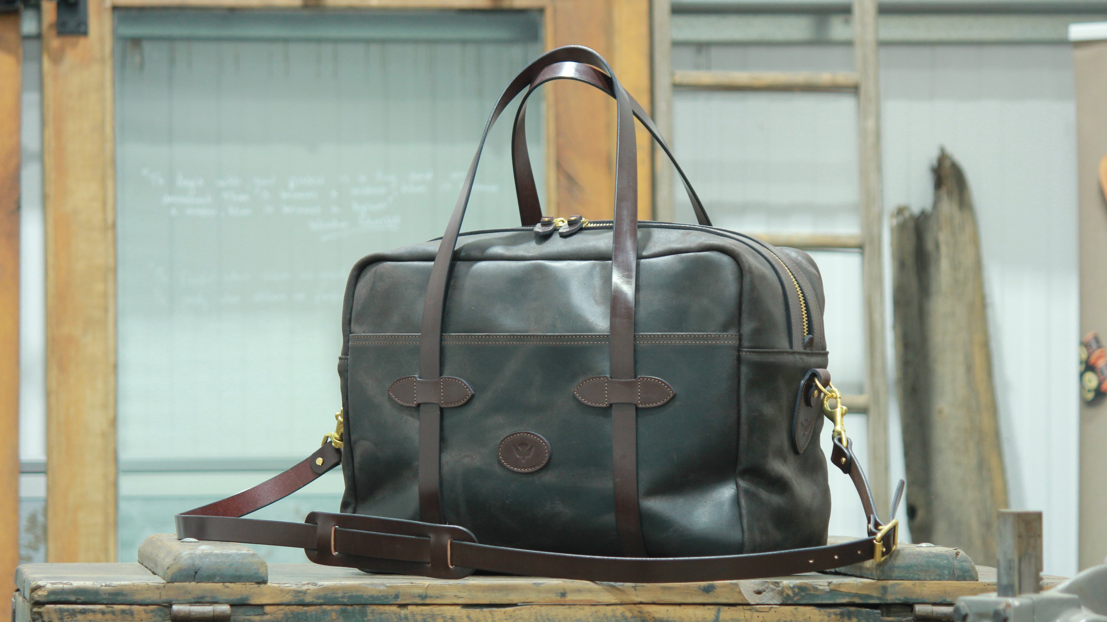 The weekender handles, strap, and fine details are crafted from bridle leather, produced by J & E Sedgwick.